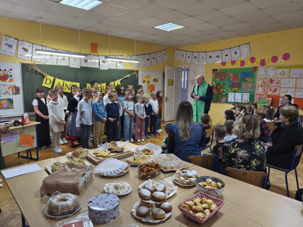 20. listopada u našoj smo školi prigodno obilježili Dane kruha i zahvalnosti za plodove zemlje. Kratkim programom i pjesmama zahvalili smo se Bogu za sve plodove koje nam je podario. Župnik don Ivan Babjak blagoslovio je hranu, djecu i sve prisutne nakon čega smo blagovali kruh, peciva i kolače koje su spremile vrijedne ruke mama, baka i djece.