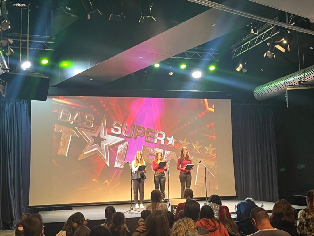 U ponedjeljak 15.prosinca održan je četvrti po redu Das Supertalent auf Deutsch za učenike njemačkog jezika osnovnih i srednjih škola u organizaciji KDV-a, Društva učitelja i profesora njemačkog jezika, Ogranak Zadar. Radi se o zanimljivom natjecanju na kojem su učenici oduševili publiku svojim kreativnim nastupima. Natjecanje se održalo u polivalentnoj dvorani Kneževe palače. Cilj ovog natjecanja je popularizirati njemački jezik, te potaknuti i motivirati djecu na učenje njemačkog jezika. Upravo iz tog razloga naši učenici šestih i sedmih razreda (koji uče njemački jezik) u pratnji učiteljica M. Vujević i K. Erstić su posjetili ovo natjecanje i proveli jednu lijepu predblagdansku večer u Zadru.